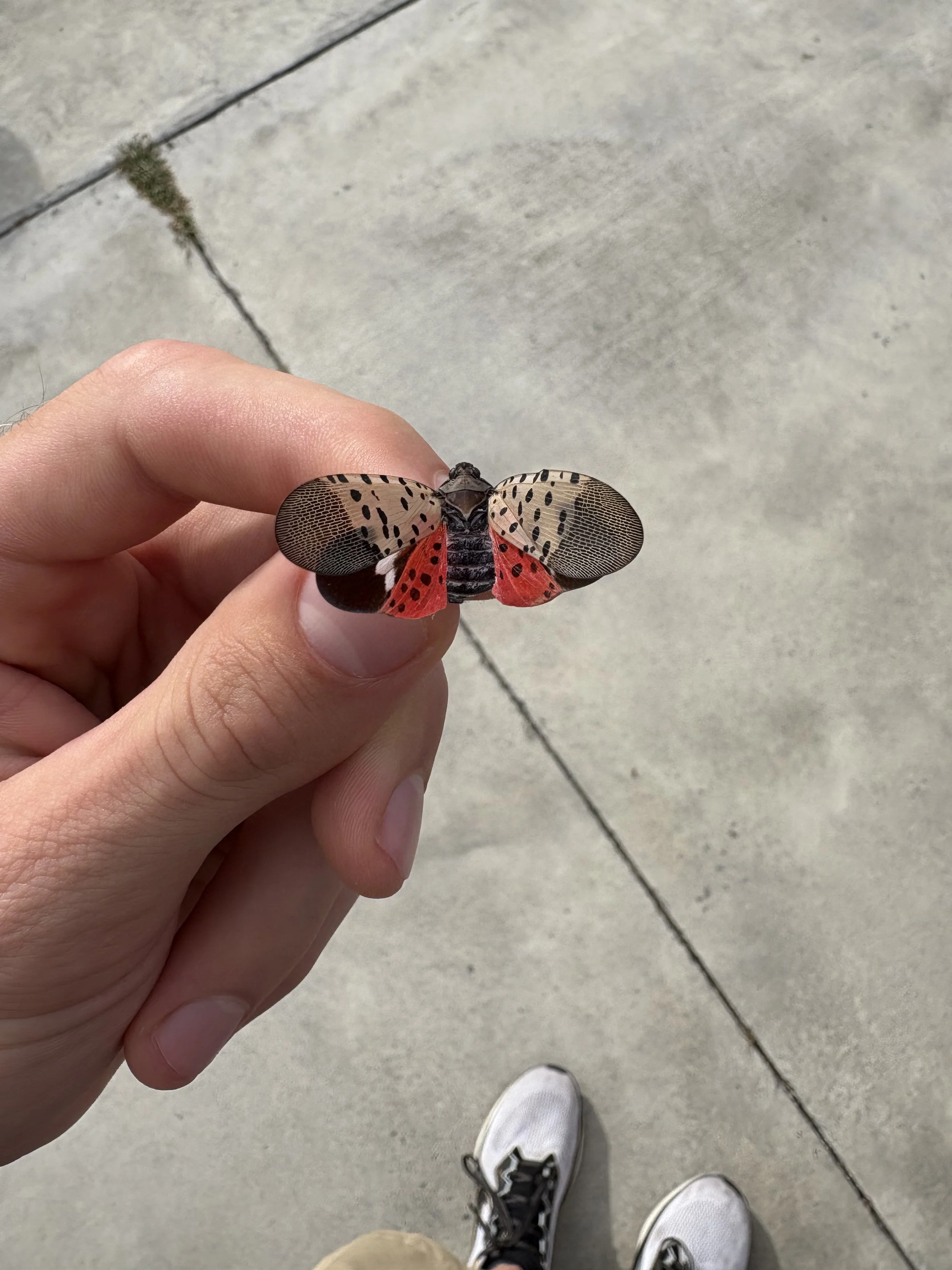 Spotted Lanternfly is an invasive insect native to Asia. Since being discovered in Pennsylvania in 2014, its population has exploded in the eastern US and is spreading west. Currently, there are a handful of known occurrences in SE Michigan, but that number is rising. SLF’s preferred host species is the invasive Tree-of-heaven, but it also feeds on species such as red and silver maple, black walnut, grapes, apple trees, hops, and several others. It can damage several specialty crops as it sucks sap from its host.